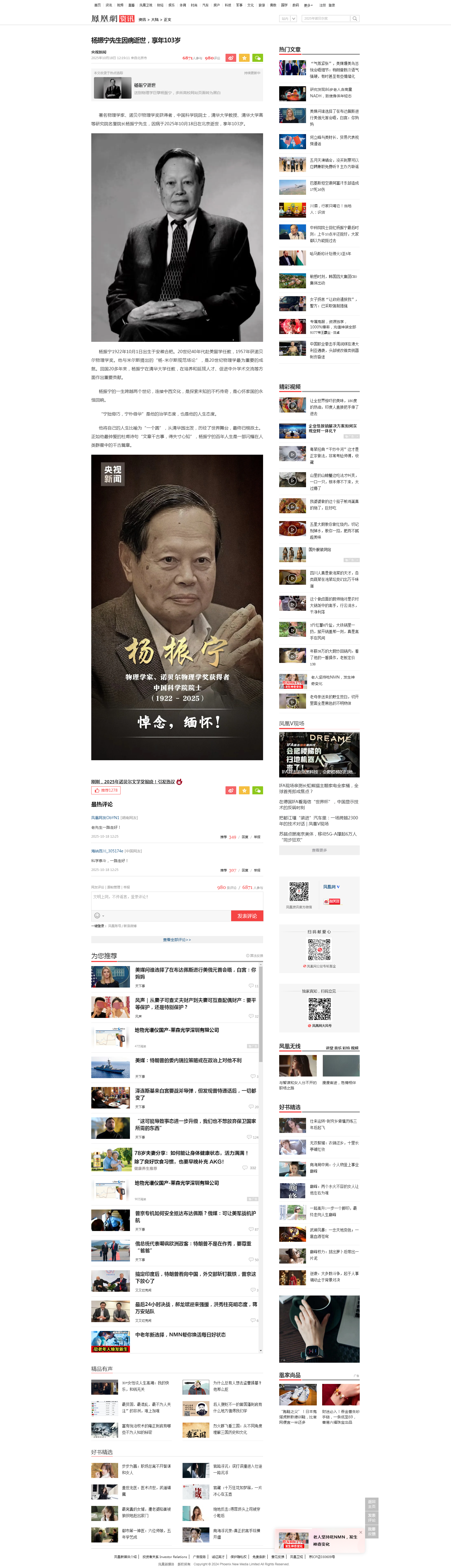 杨振宁先生因病逝世,享年103岁 凤凰网